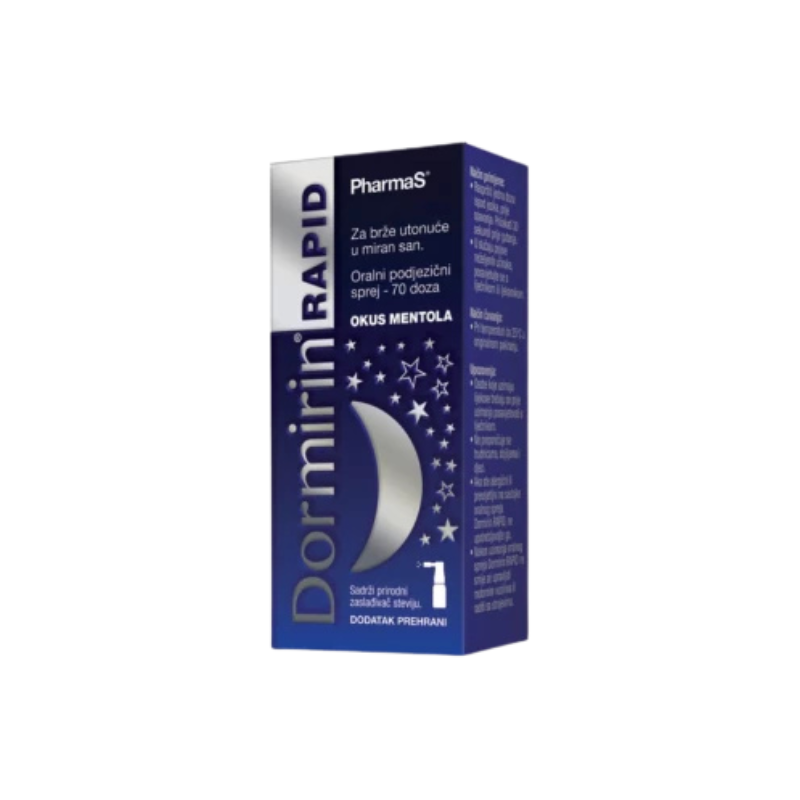 - An oral sublingual spray of 10ml (80 doses x 1mg of melatonin), with menthol flavor